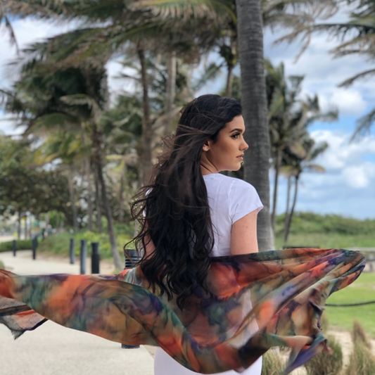 Hand Painted Orange and Purple Watercolor Wool & Silk Scarf - Size: 77"/28"