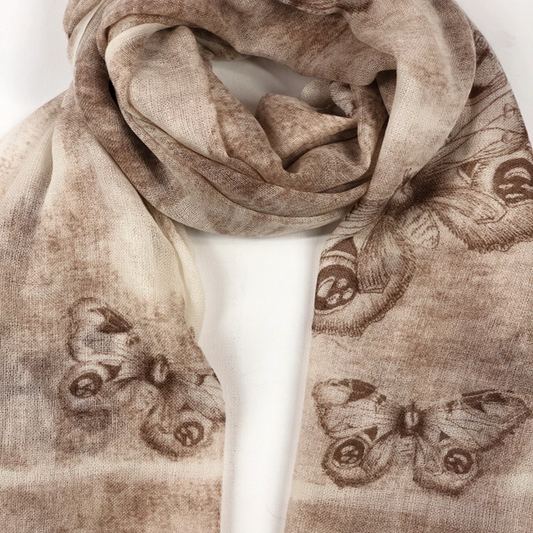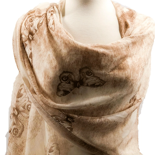 Brown Wool Butterfly Print Scarf - Screen Print - Size: 77"/28"