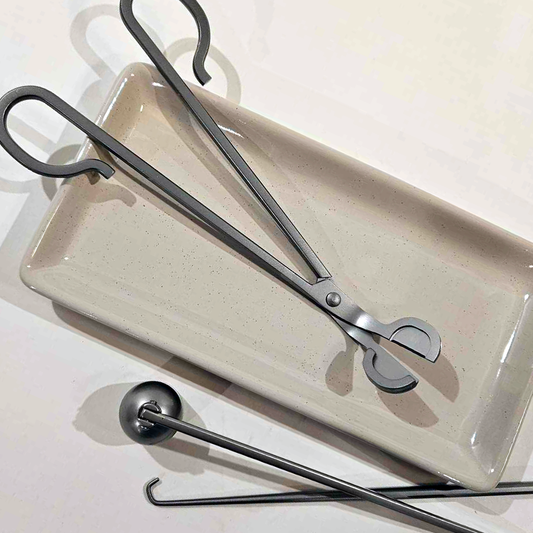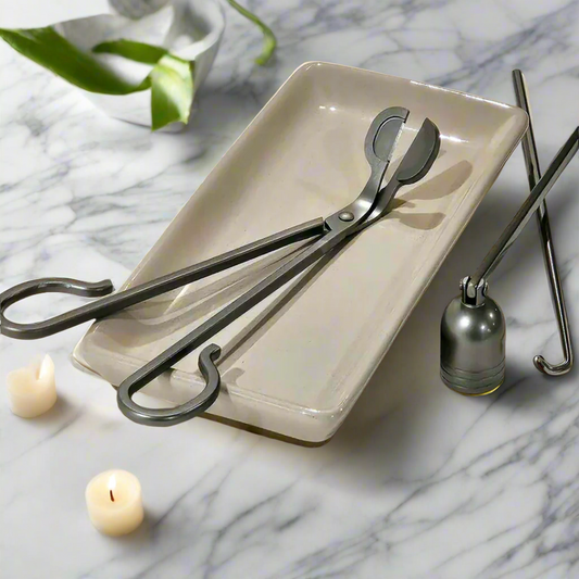Candle Care Set - Stoneware Tray, Metal Candle Snuffer, Wick Trimmer, and Wick Dipper