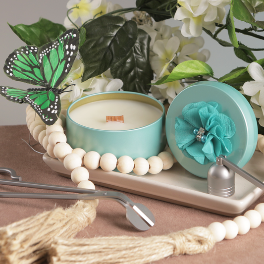 Amalfi Coast Hand-Poured - Wood Wick Soy Candle - Metallic Blue Vessel - 7oz