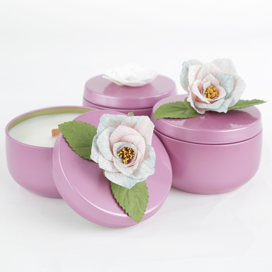Vanilla Cashmere - Hand-Poured 7oz - Wood Wick Soy Candle - Metallic Rose Vessel