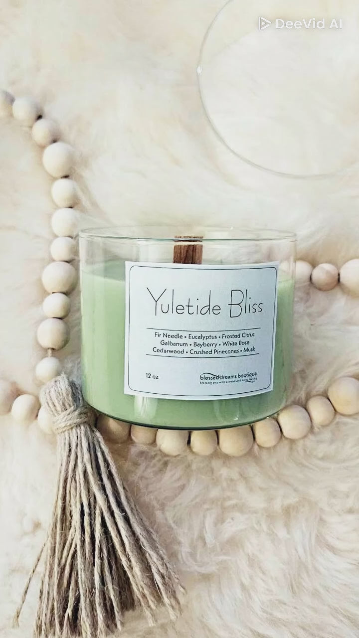 Embark on a sensory journey with the captivating Yuletide Bliss Soy candle, expertly infused with the essence of the season. Immerse yourself in the refreshing embrace of Fir Needle and Eucalyptus, reminiscent of a crisp winter forest. The invigorating notes of Frosted Citrus add a touch of brightness, perfectly balanced by the earthy combination of Galbanum, Bayberry, and the delicate elegance of White Rose.
